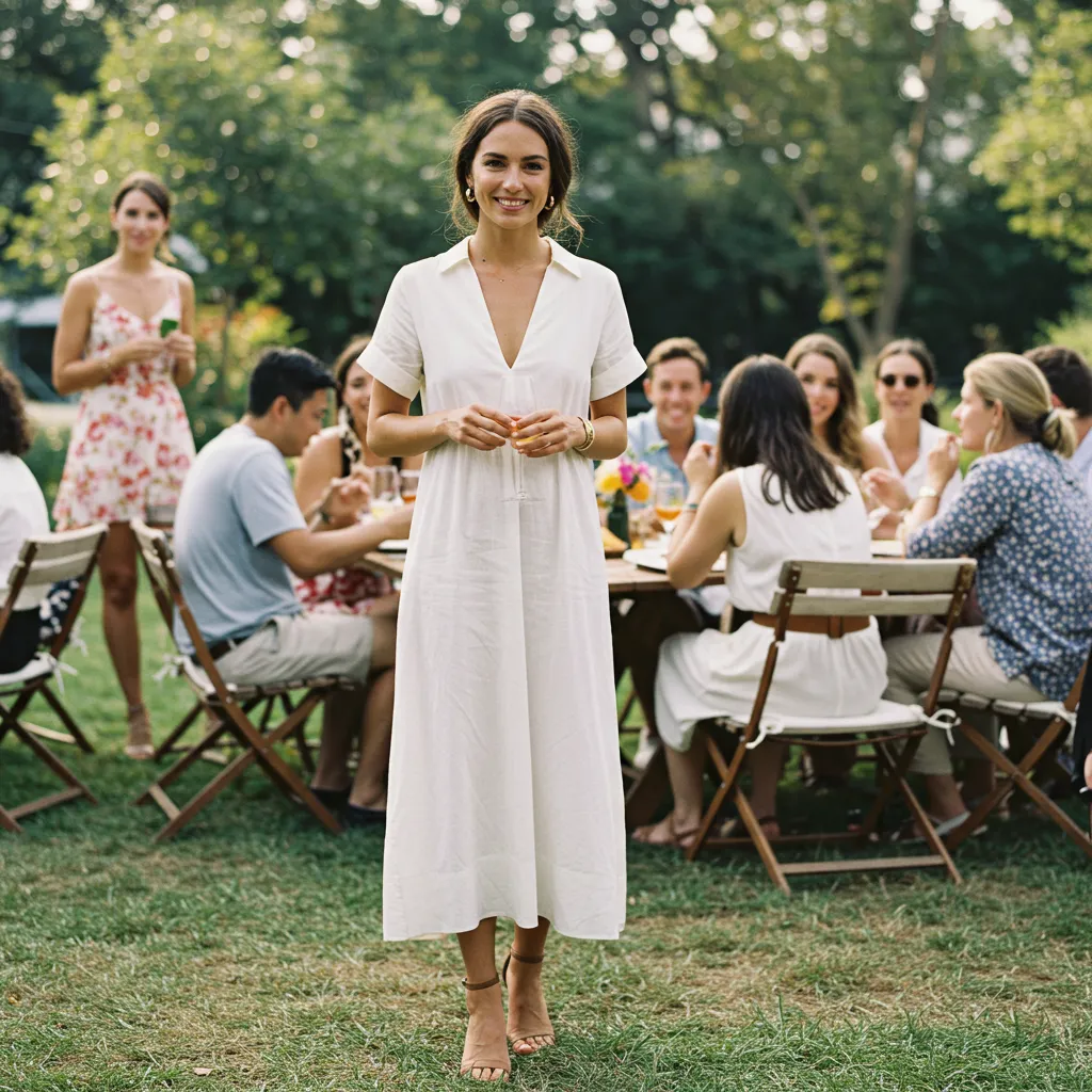 Conjuntos y vestidos ligeros, creados para celebraciones diurnas o afterworks: tejidos suaves y cortes sencillos con un toque de originalidad.