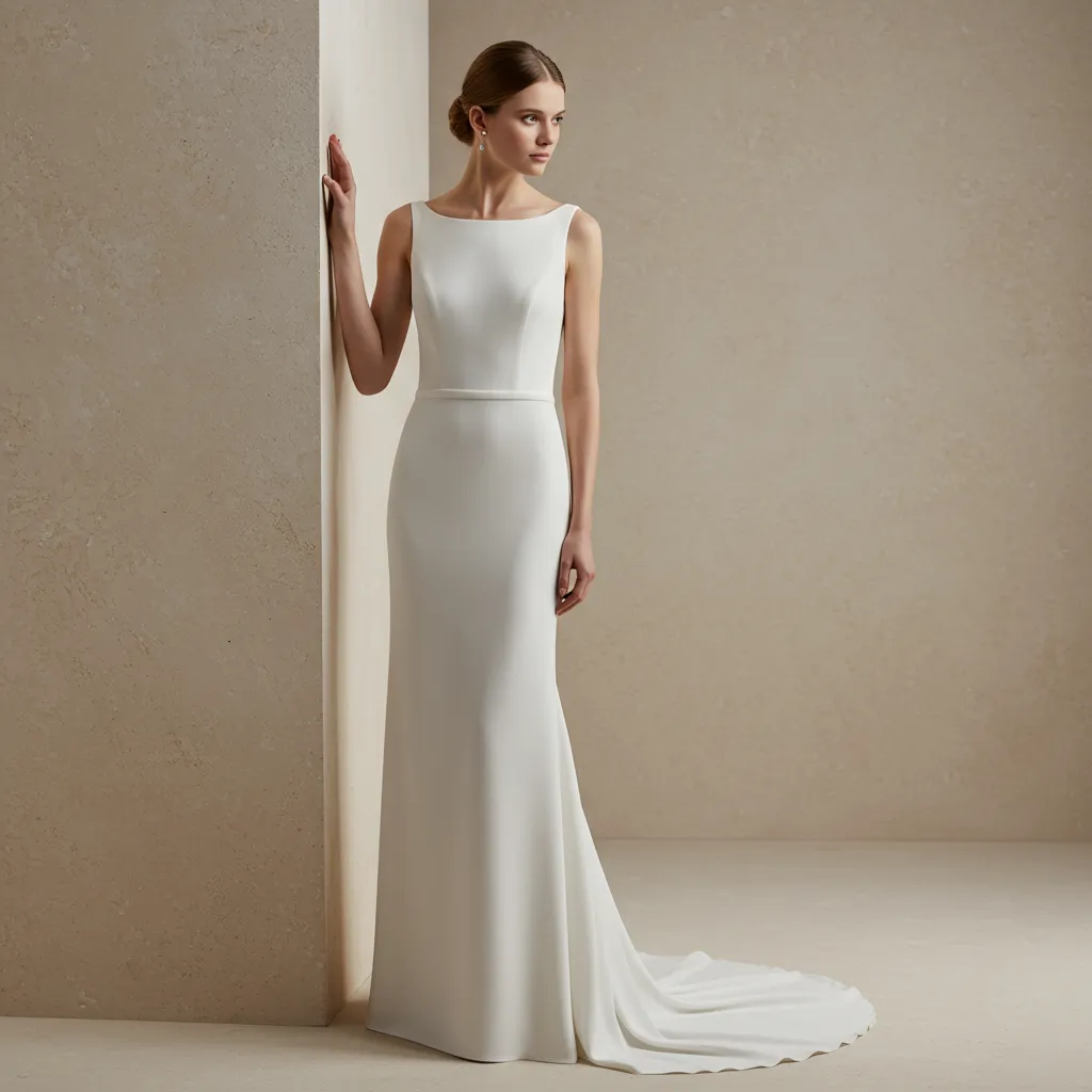 Para novias que apuestan por la simplicidad sofisticada, proponemos líneas rectas, tejidos ligeros y detalles mínimos que hablan de un gusto contemporáneo.